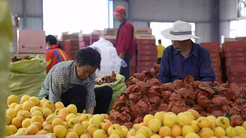 “早上5点就开始摘果了,那头摘完,这边就赶紧打包送去我们在镇上的物流点发货。”苗国存是湖北三棵苗农业科技有限公司总经理,这是他回到家乡种桃的第十个年头。