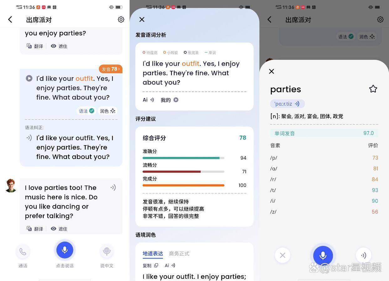 一位资深中学英语老师表示:“星空外语对于我说的每一句话,都有语法批改、表达润色、发音打分等功能,在表层产品整合形态上做得很好。这些功能节省了时间和精力,让语言学习更高效。”一位微博科技类大V博主称:“我试用了星空外语,觉得很不错。我虽然词汇量没问题,但缺乏英语口语表达习惯。它的雅思面试模式对我帮助很大,问题设计环环相扣,能锻炼我的口语表达能力。”另一位微博科技类大V博主分享:“在星空外语和AI聊天很有趣,能让我放下说英语的压力,不知不觉就学习了很长时间。”